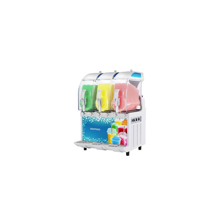 - Slushie machine equipped with 3x11-litres insulated tanks